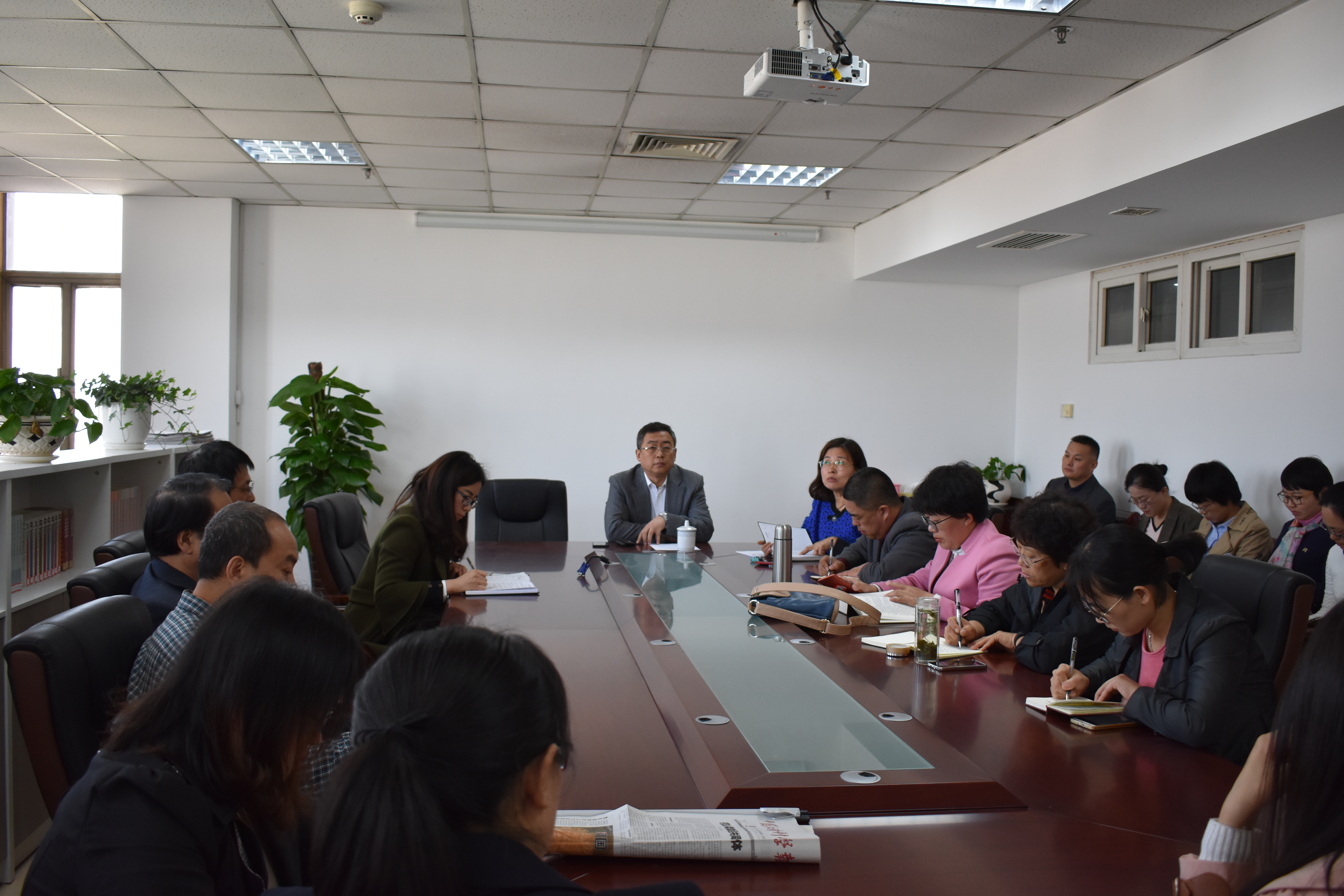 太阳成集团tyc234cc古天乐于4月16日上午在学院会议室召开 “大学习、大调研、大改进”专题学习会议。会议由校党委副书记、学院院长王庆军主持,全院全体教职员工参加。