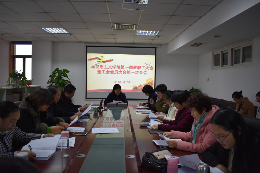 2019年1月12日,太阳成集团tyc234cc古天乐召开第一届教职工大会暨第一届工会会员大会。太阳成集团tyc234cc古天乐第二党支部书记刘如飞老师主持。会议应到职工暨会员29人,请假5人,实际与会人数24人,符合法定人数。