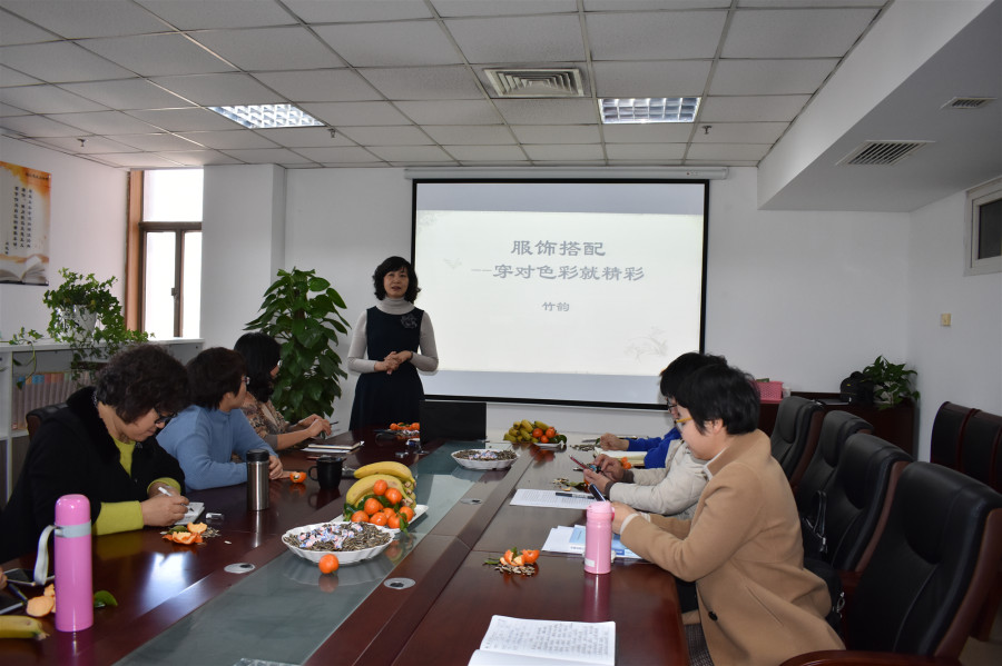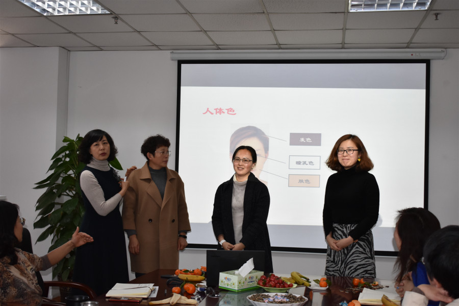 陈女士通过美的品味层级、色彩分析、色彩特性等方面,用简明扼要的语言分析了不同人群与不同色调、色系以及色域的关系。并针对每个女教工的肤色及外貌特征给予了穿衣打扮的技巧建议。