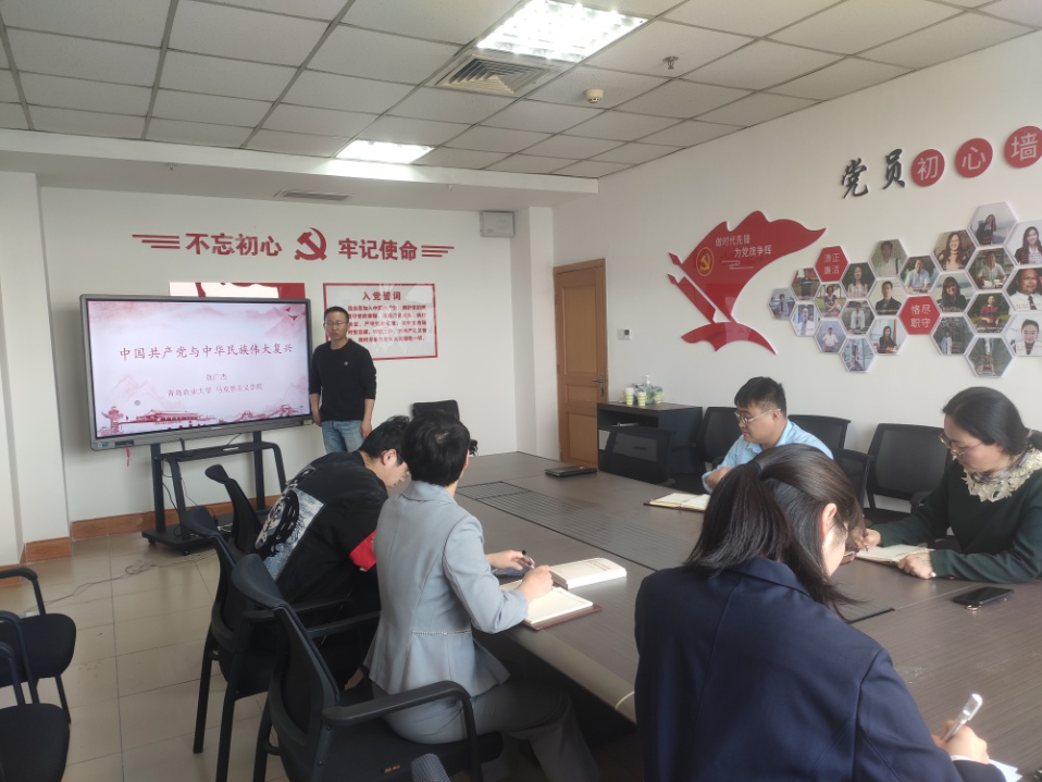 活动开始,张广杰老师以《中国共产党与中华民族伟大复兴》为题,给大家讲了一节生动而深刻的党课。张老师从“开天辟地:新民主主义革命时期完成救国大业”、“改天换地:社会主义革命和建设初期完成兴国大业”、“翻天覆地:改革开放与社会主义现代化建设推进富国大业”、“惊天动地:中国特色社会主义新时代推进并实现强国大业”等四个方面,讲述了中国共产党自1921年建党以来,领导中国人民为实现中华民族伟大复兴而不懈奋斗,逐步实现救国、兴国、富国、强国的百年奋斗史。报告主题鲜明,逻辑谨严,史论结合,思想深邃,使大家耳目一新,受益良多。