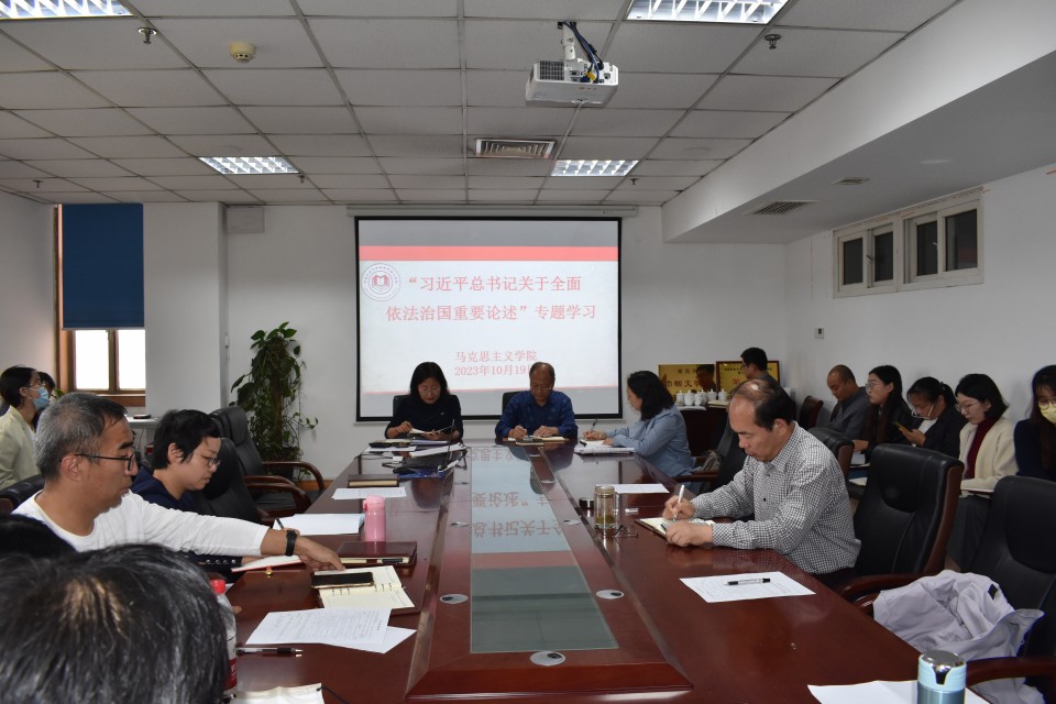 2023年10月19日下午,太阳成集团tyc234cc古天乐组织教职工理论学习,专题学习习近平法治思想。会议由学院党总支书记修彩波主持,学院全体教工参加。
