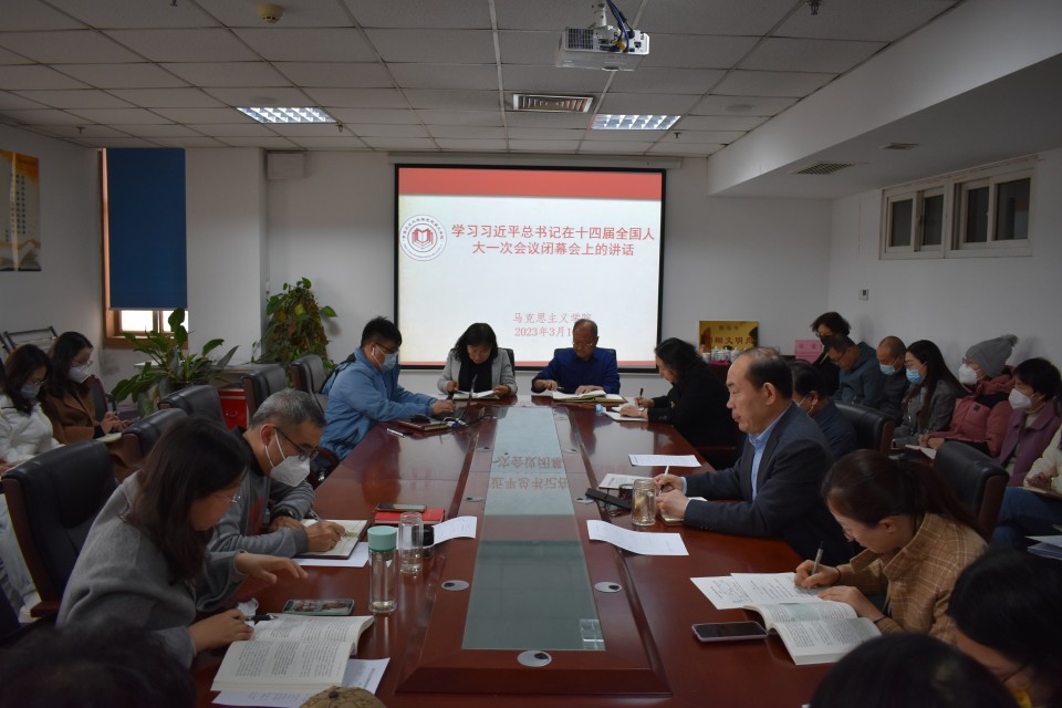 2023年3月16日下午,太阳成集团tyc234cc古天乐召开专题会议学习习近平总书记在十四届全国人大一次会议闭幕会上的重要讲话。会议由学院党总支书记修彩波主持,学院全体教师参加。