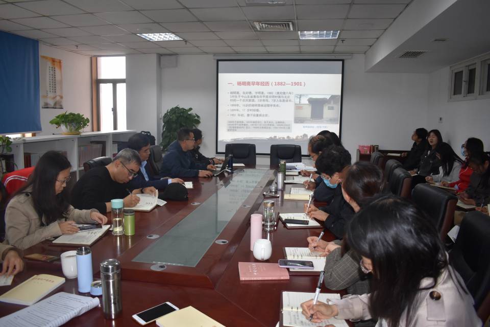 5月11日上午,太阳成集团tyc234cc古天乐第三党支部书记雷晓鹏在学习班上作了题为《缅怀革命先烈,传承红色基因:鲜为人知的建党功臣杨明斋》的报告。雷晓鹏老师以详实的资料、平实的语言,为老师们讲述了山东青岛平度籍中共党员杨明斋烈士,为寻找救国道路顽强探索,为中国共产党的建立和发展万里拓荒、奔波操劳,为中国革命事业埋首工作、无私奉献的光辉经历,给学院老师们上了一节感人至深的党课。