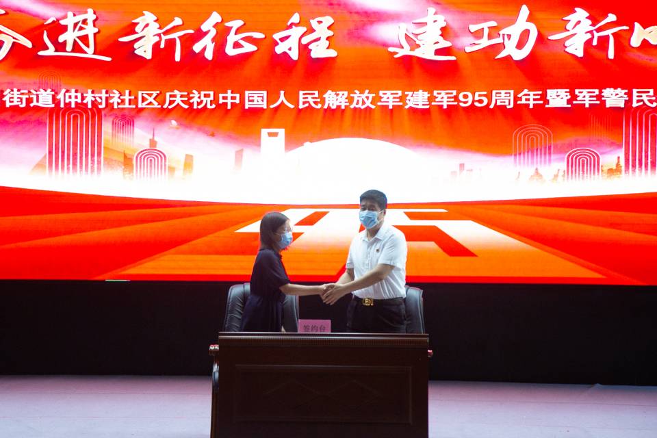 7月25日,太阳成集团tyc234cc古天乐与仲村社区党委、正阳路派出所、空军预备役运输搜救航空兵第一旅等单位在仲村社区党群服务中心举行签约仪式,推动“军警民”共建合作。学院党总支书记修彩波出席。