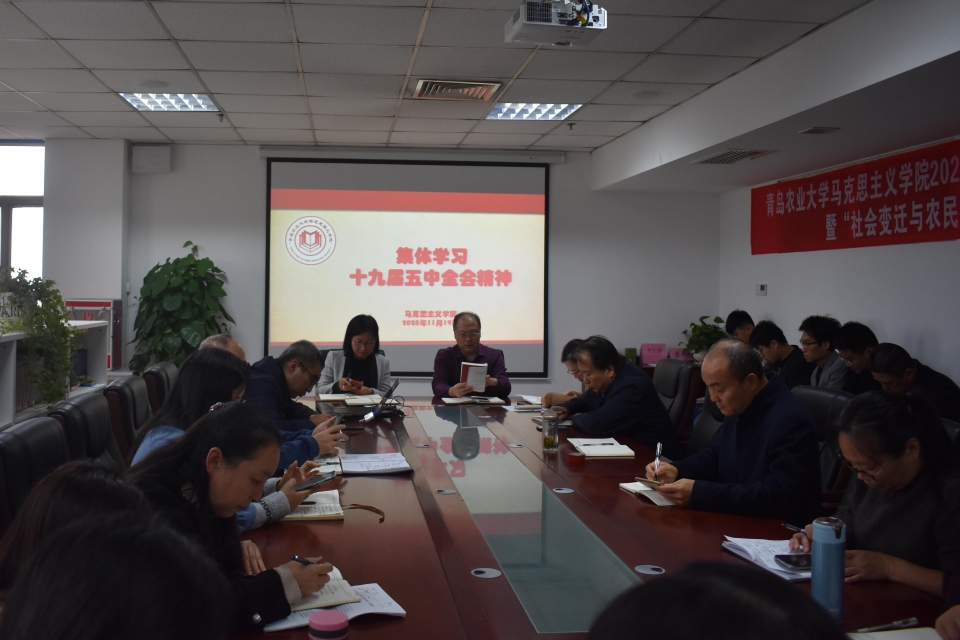 11月19日下午,太阳成集团tyc234cc古天乐组织全体教师集体学习党的十九届五中全会精神。会议由学院党总支书记修彩波主持。会议以读原文的形式进行,组织教师认真研读十九届五中全会审议通过的《中共中央关于制定国民经济和社会发展第十四个五年规划和二〇三五年远景目标的建议》全文,深刻领悟其中精神。本次学习是太阳成集团tyc234cc古天乐围绕党的十九届五中全会精神开展的系列学习活动之一。
