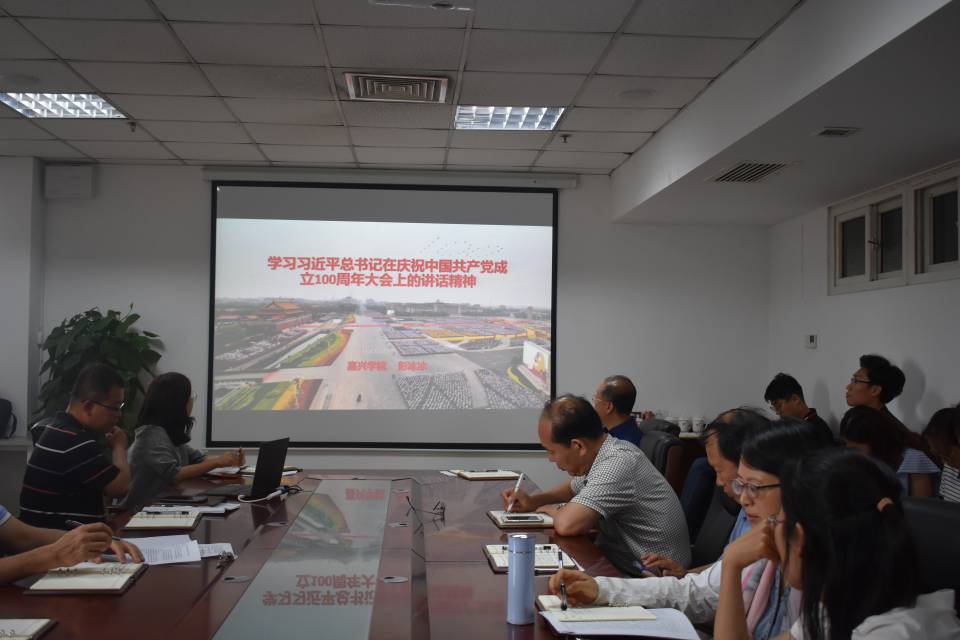 交流结束后,全体教师集中收看了嘉兴学院人文社科处处长彭冰冰教授的《学习习近平总书记七一讲话精神》直播视频,该讲座是教育部社科司组织的开展学习“七一”重要讲话联学联讲联研活动内容之一,通过学习加深了对习近平总书记讲话精神的领悟,也促使教师探讨如何将习近平总书记讲话精神融入马克思主义理论研究和思政课教学。