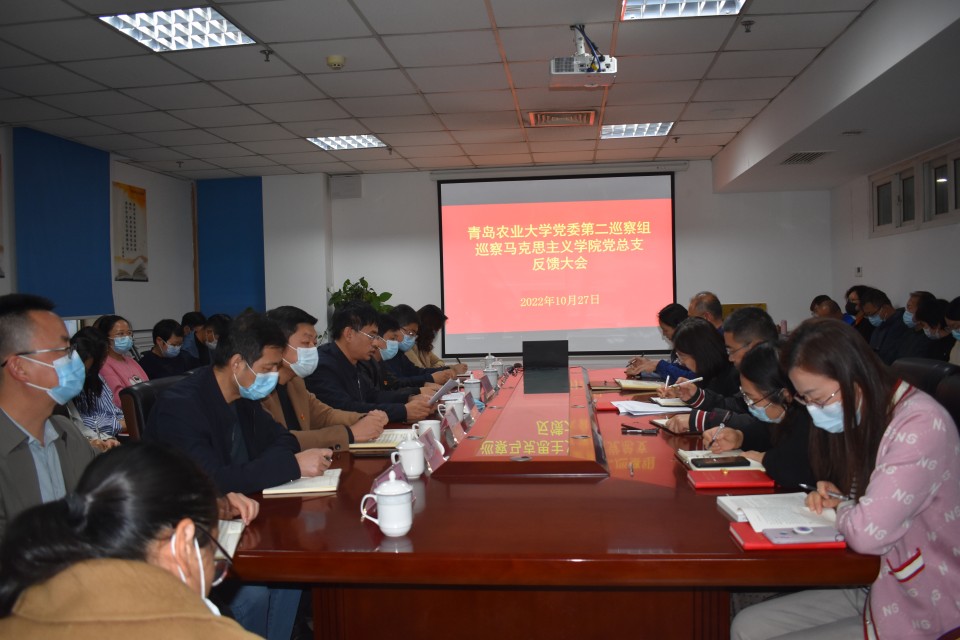 10月27日,太阳成集团tyc234cc古天乐党委第二轮巡察第二巡察组向太阳成集团tyc234cc古天乐党总支反馈巡察情况。第二巡察组组长肖传强、巡察办主任张兴华先后向学院党政主要负责同志和学院班子全体成员分别反馈情况。随后,召开校党委第二轮巡察第二巡察组巡察太阳成集团tyc234cc古天乐党总支情况反馈会,肖传强传达巡察反馈意见,张兴华传达学校关于巡察整改工作的相关精神,并对巡察整改工作提出要求。学院党总支书记修彩波主持反馈会并代表学院党总支作表态发言。